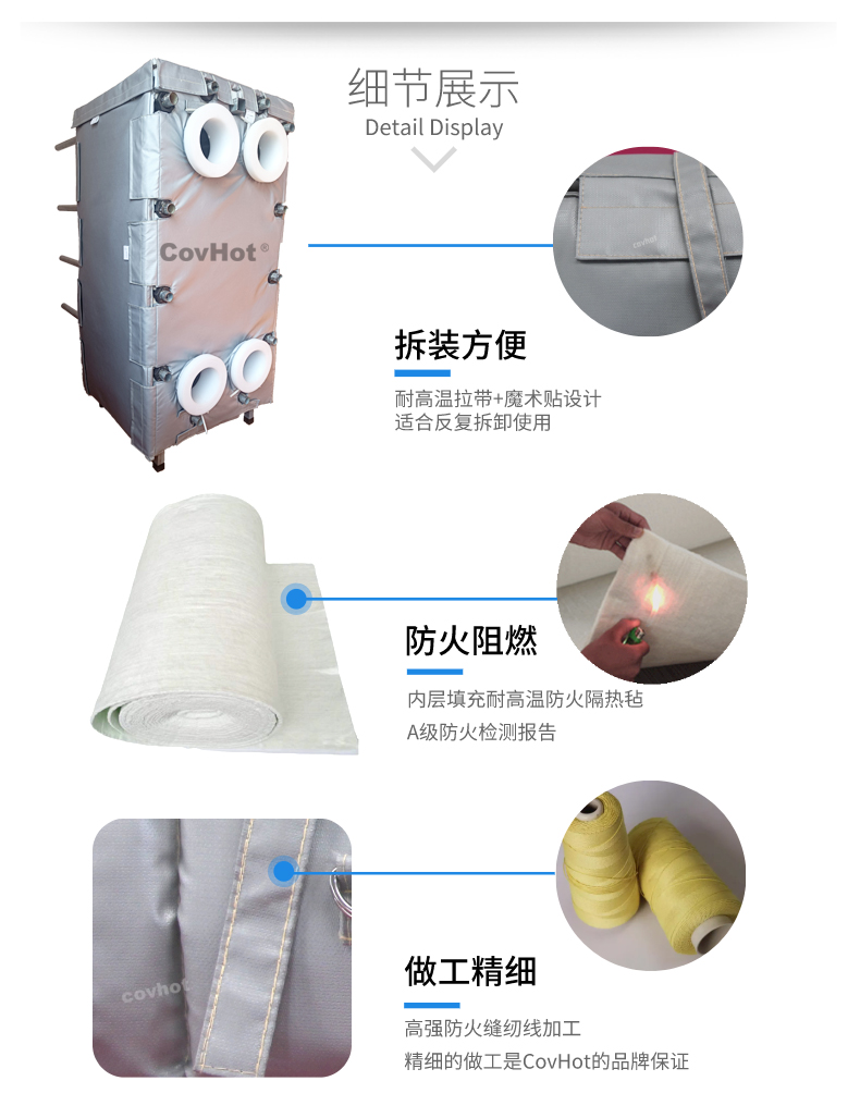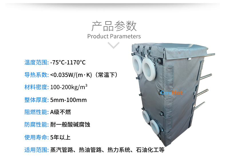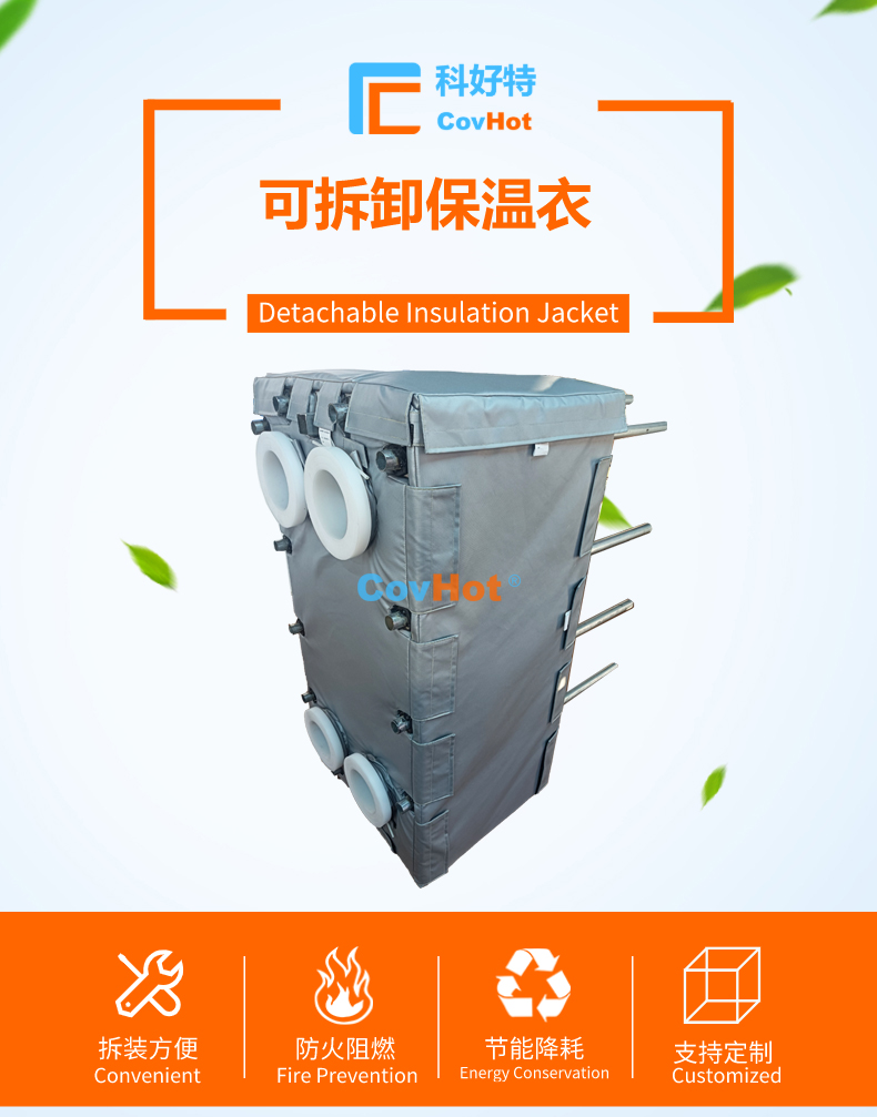 針對(duì)以上的問題,科好特自主研發(fā)的節(jié)能型板換保溫套,根據(jù)設(shè)備不同的尺寸形狀量身定制,可有效減少換熱器的熱損失,裝拆方便,可重復(fù)使用。節(jié)能型板換保溫套是工業(yè)節(jié)能保溫理想選擇!