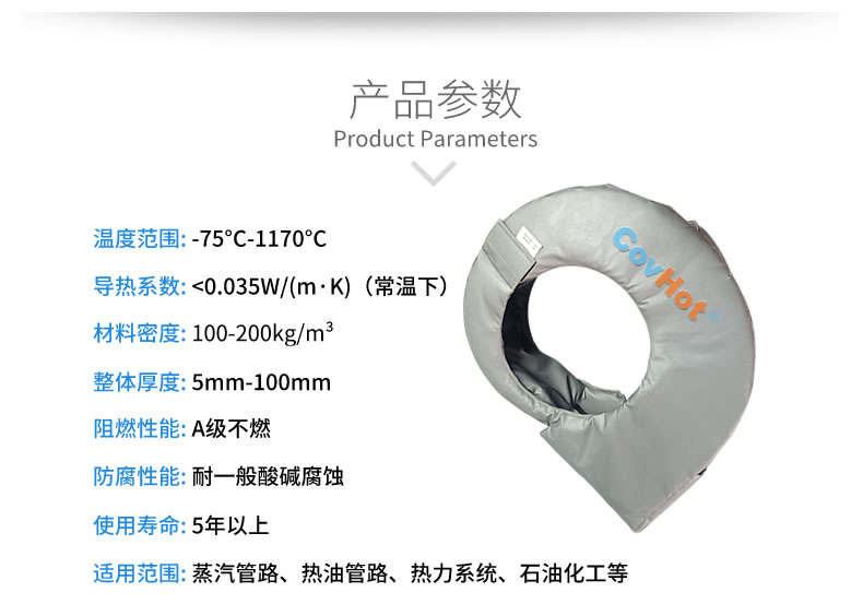 科好特可拆卸式閥門保溫套具有耐高溫、耐油污、絕緣性能好、保溫性優(yōu)、使用壽命長等優(yōu)點,可用在不同溫度、不同形狀的管道和各種冷熱設(shè)備的絕熱保溫。對于要經(jīng)常拆卸、維修保養(yǎng)、清洗的管道設(shè)備尤為實用。不僅可以改善員工的工作環(huán)境、有效降低室內(nèi)溫度,還防止人員燙傷,提高企業(yè)安全和平穩(wěn)生產(chǎn)水平。
